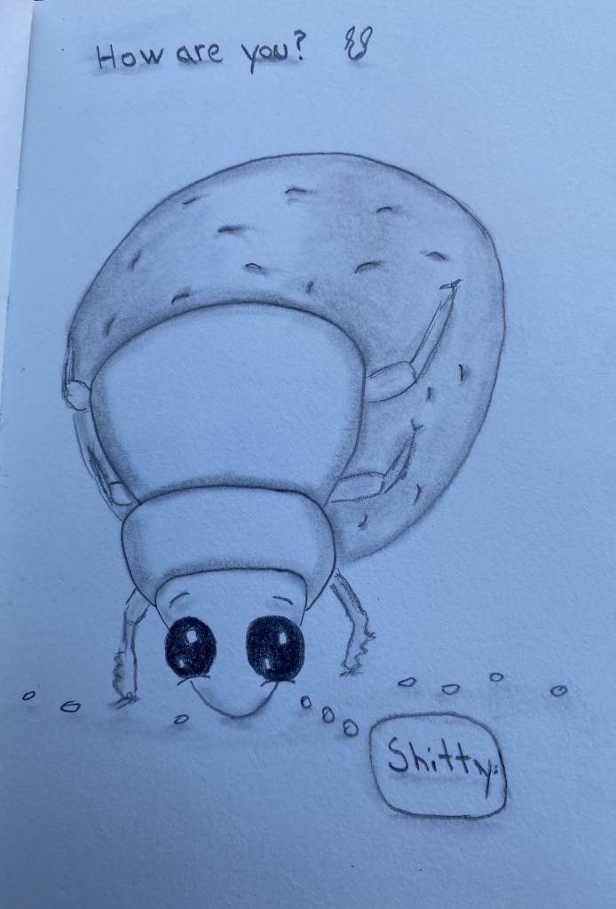 Candimals #2 Posted bySandraScenarioSJanuary 2, 2023December 31, 2022Posted inCandimalsTags:animals, candid, candid animals, Comic, comic artist, comic drawing, comic series, cute, dark humor, dry humor, dung bettle, funny, graphite, graphite drawing, hand drawn, humor, questions, sketchbook, truth, webcomic, webtoon January 2nd, 2023 Dung Beetle Share this: Click to share on Reddit (Opens in new window) Reddit Tweet Click to share on WhatsApp (Opens in new window) WhatsApp Click to email a link to a friend (Opens in new window) Email Like Loading... Published by SandraScenarioS Attempting to do a project for myself to not only make people smile but to improve my skills and learn new ones. View more posts