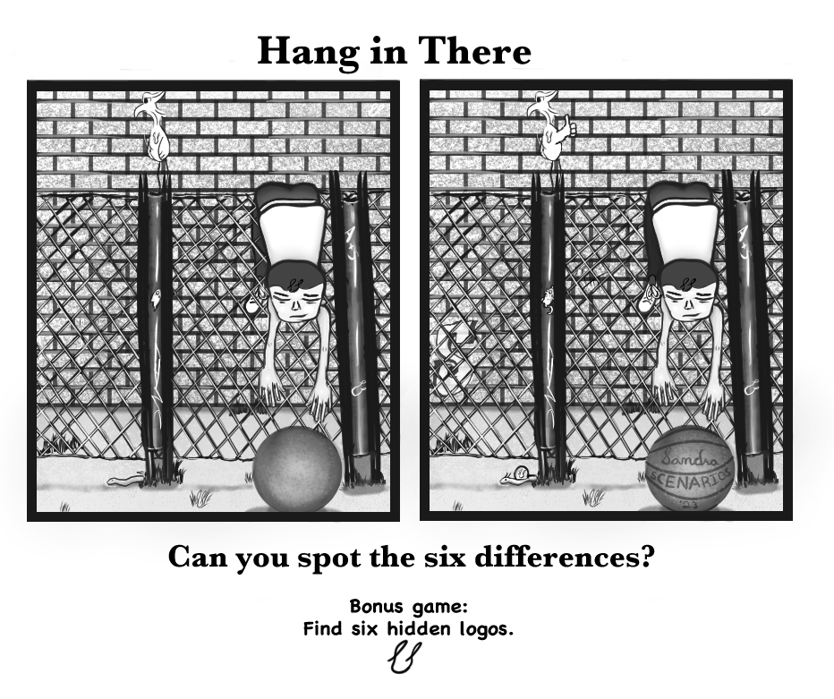 Hang in There Posted bySandraScenarioSFebruary 5, 2023February 24, 2023Posted ingames, out of the blueTags:bird, black and white drawing, Brain Teasers, Comic, comic art, comic artist, comic drawing, digital art, digital artist, drawing game, fun, funny, game, hang in there, hanging, hidden game, humor, out of the blue, spot the difference, webcomic, webtoon February 5th, 2023 “Out of the Blue”Brain Teaser #1 https://videopress.com/v/L4c6vlst?resizeToParent=true&cover=true&preloadContent=metadata&useAverageColor=true Timelapse Answer Key Share this: Click to share on Reddit (Opens in new window) Reddit Tweet Click to share on WhatsApp (Opens in new window) WhatsApp Click to email a link to a friend (Opens in new window) Email Like Loading... Published by SandraScenarioS Attempting to do a project for myself to not only make people smile but to improve my skills and learn new ones. View more posts