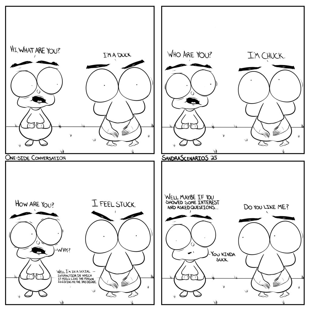 One-Sides Conversation Posted bySandraScenarioSMarch 24, 2025Posted inWeekly ComicTags:Comic, comic artist, digital art, digital artist, webcomic March 24th, 2025 Share this: Click to share on Reddit (Opens in new window) Reddit Tweet Click to share on WhatsApp (Opens in new window) WhatsApp Click to email a link to a friend (Opens in new window) Email Like Loading... Published by SandraScenarioS Attempting to do a project for myself to not only make people smile but to improve my skills and learn new ones. View more posts