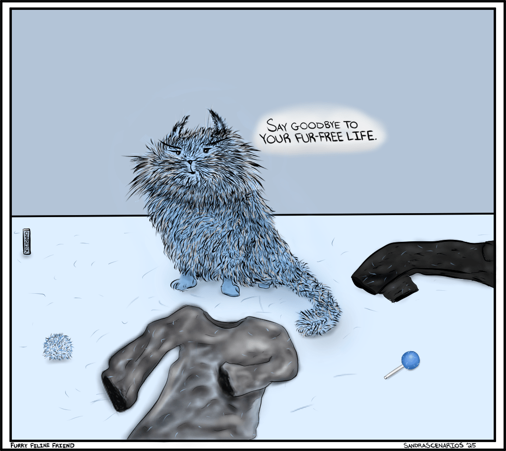 Furry Feline Friend Posted bySandraScenarioSApril 14, 2025Posted inWeekly ComicTags:Comic, webtoon April 14th, 2025 Share this: Click to share on Reddit (Opens in new window) Reddit Tweet Click to share on WhatsApp (Opens in new window) WhatsApp Click to email a link to a friend (Opens in new window) Email Like Loading... Published by SandraScenarioS Attempting to do a project for myself to not only make people smile but to improve my skills and learn new ones. View more posts