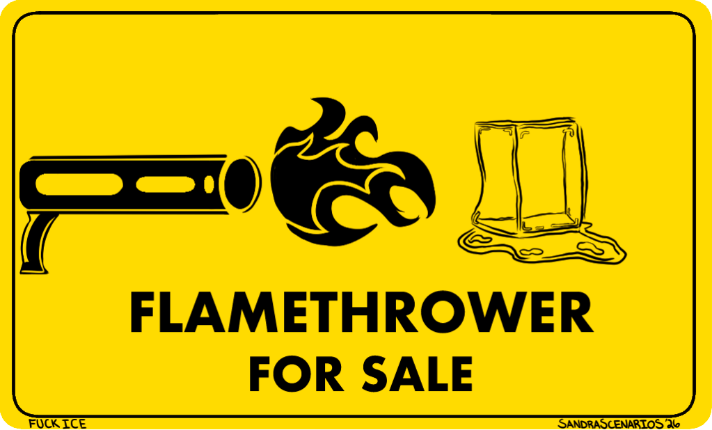 Fuck ICE Posted bySandraScenarioSJanuary 19, 2026January 18, 2026Posted inWeekly Comic January 19th, 2026 Share this: Share on Reddit (Opens in new window) Reddit Tweet Share on WhatsApp (Opens in new window) WhatsApp Email a link to a friend (Opens in new window) Email Like Loading... Published by SandraScenarioS Attempting to do a project for myself to not only make people smile but to improve my skills and learn new ones. View more posts