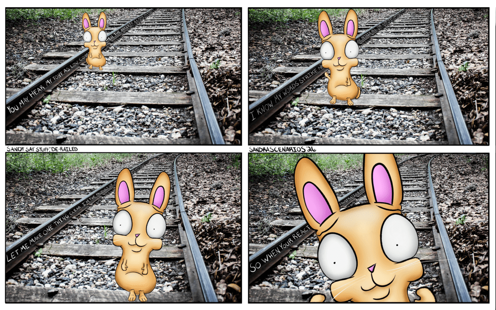 Sandy Says Stuff: Derailed Posted bySandraScenarioSMarch 16, 2026Posted inWeekly ComicTags:mixed media March 16th, 2026 Photograph taken by: SandraScenarioS Share this: Share on Reddit (Opens in new window) Reddit Tweet Share on WhatsApp (Opens in new window) WhatsApp Email a link to a friend (Opens in new window) Email Like Loading... Published by SandraScenarioS Attempting to do a project for myself to not only make people smile but to improve my skills and learn new ones. View more posts